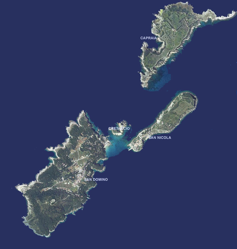 Mappa arcipelago Isole Tremiti con San Domino, San Nicola, Cretaccio, Capraia